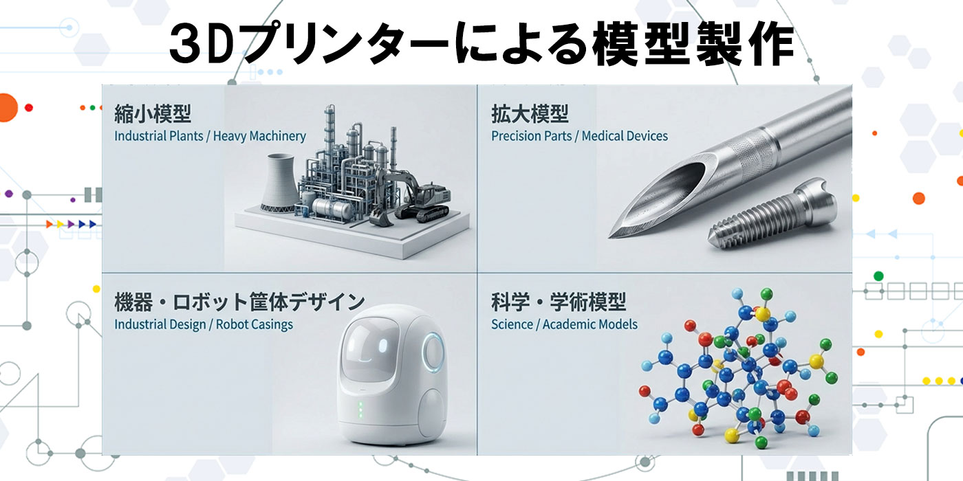 精密部品や小さな製品を拡大して模型を制作します。例えば数センチ程度の貴社の小さな製品を10~100倍にサイズを拡大して模型にすれば、アイキャッチとして展示会やイベントでPRするのに最適です。高精細の3Dプリンターで出力いたします。